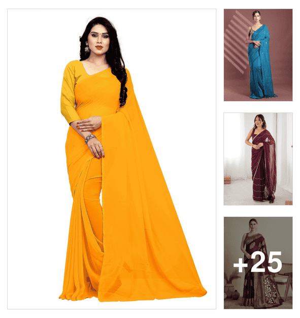 women solid with work embroidered saree with blouse