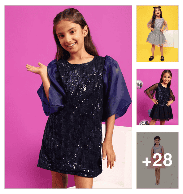 girls self design three quarter sleeve frock