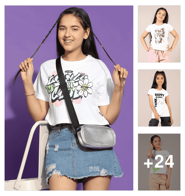 girls front print round neck t-shirt