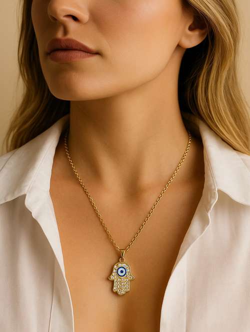 - » women hamsa hand evil eye gold pendant
