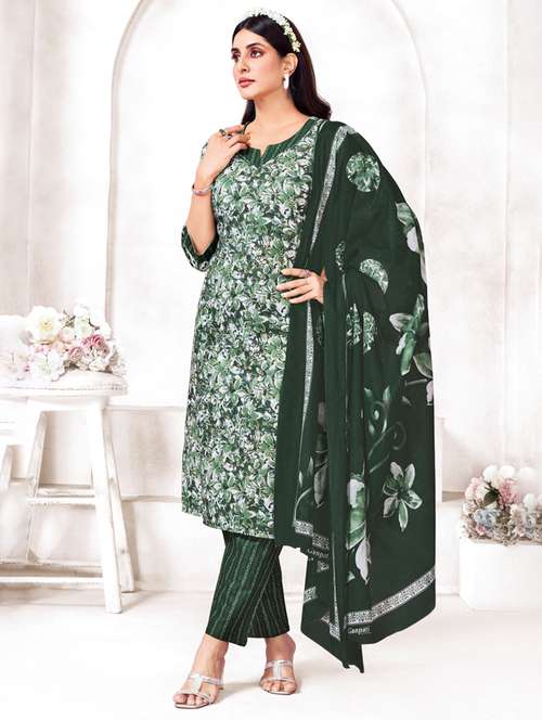 - Find gorgeous sets of ethnic wears in trending designs in green colors suitable for casual wear of occasions.