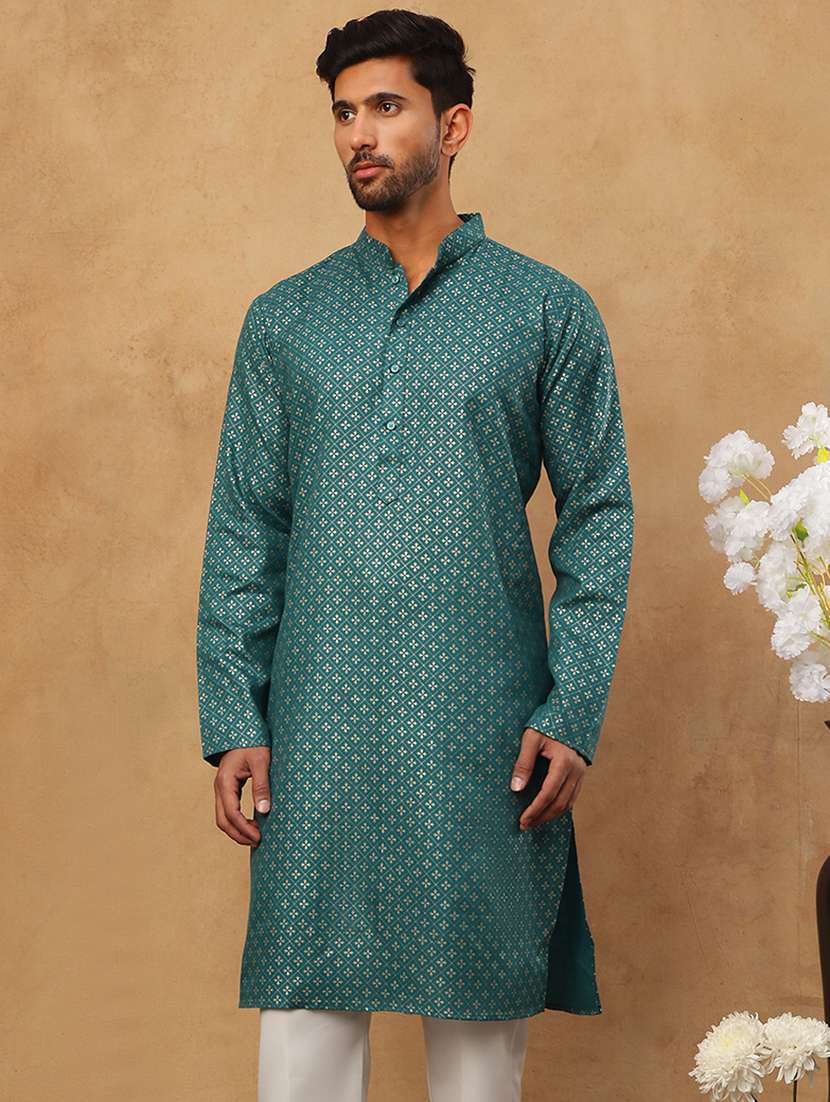 This cotton blend foil printed kurta offers a perfect balance of comfort and style. Soft, breathable fabric makes it ideal for all-day wear. Suitable for festive and traditional occasions.