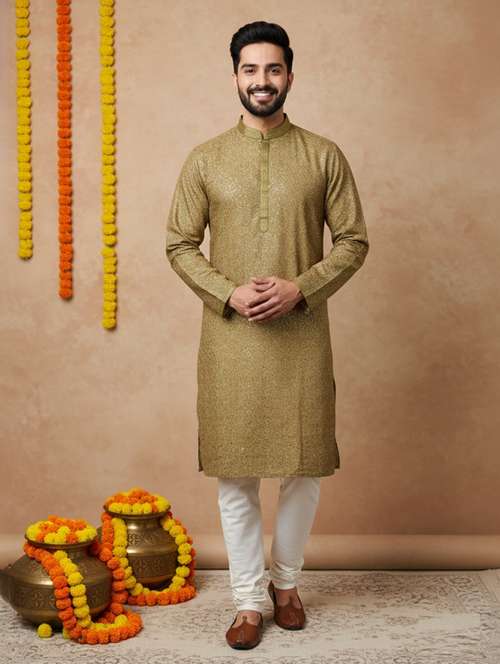 - » men self design mandarin neck long kurta