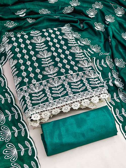 • Look ultra gorgeous in unstitched suits from Manvaa and grab these beautiful suits in green colour.