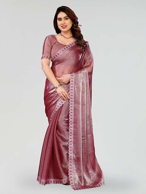 women solid with work embellished saree with blouse