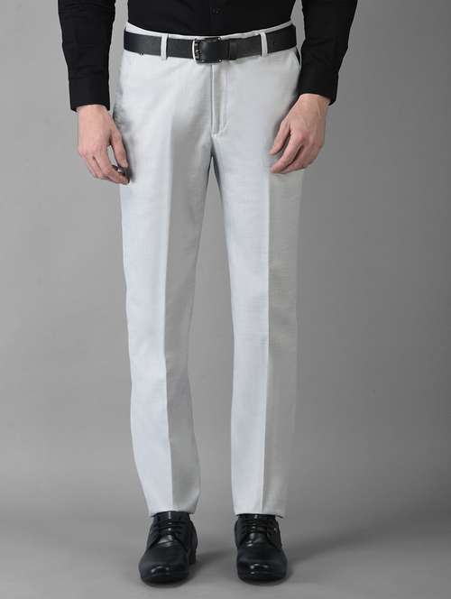 - » grey solid flat front formal trouser