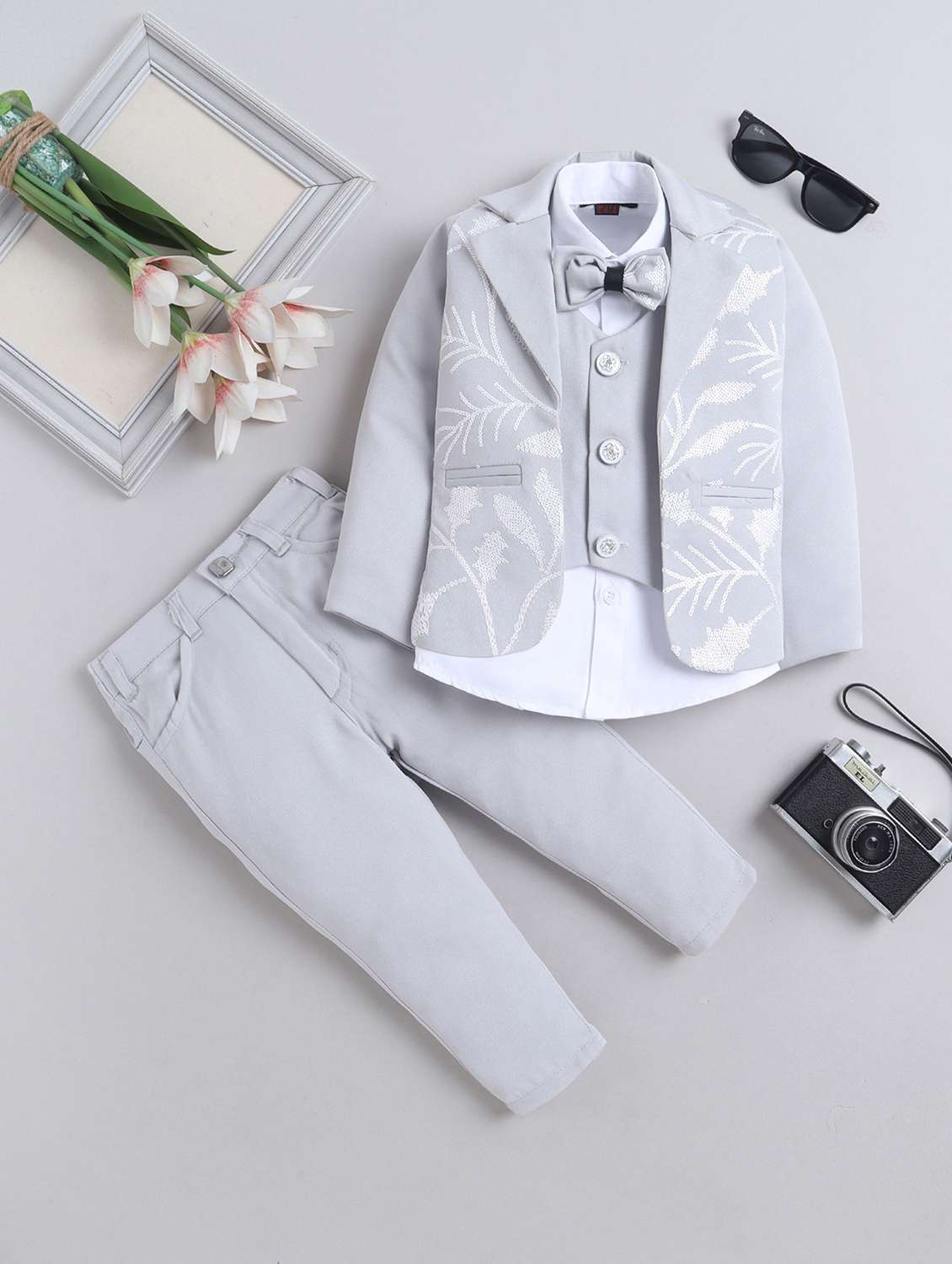 boys embroidered blazer and trouser with shirt set