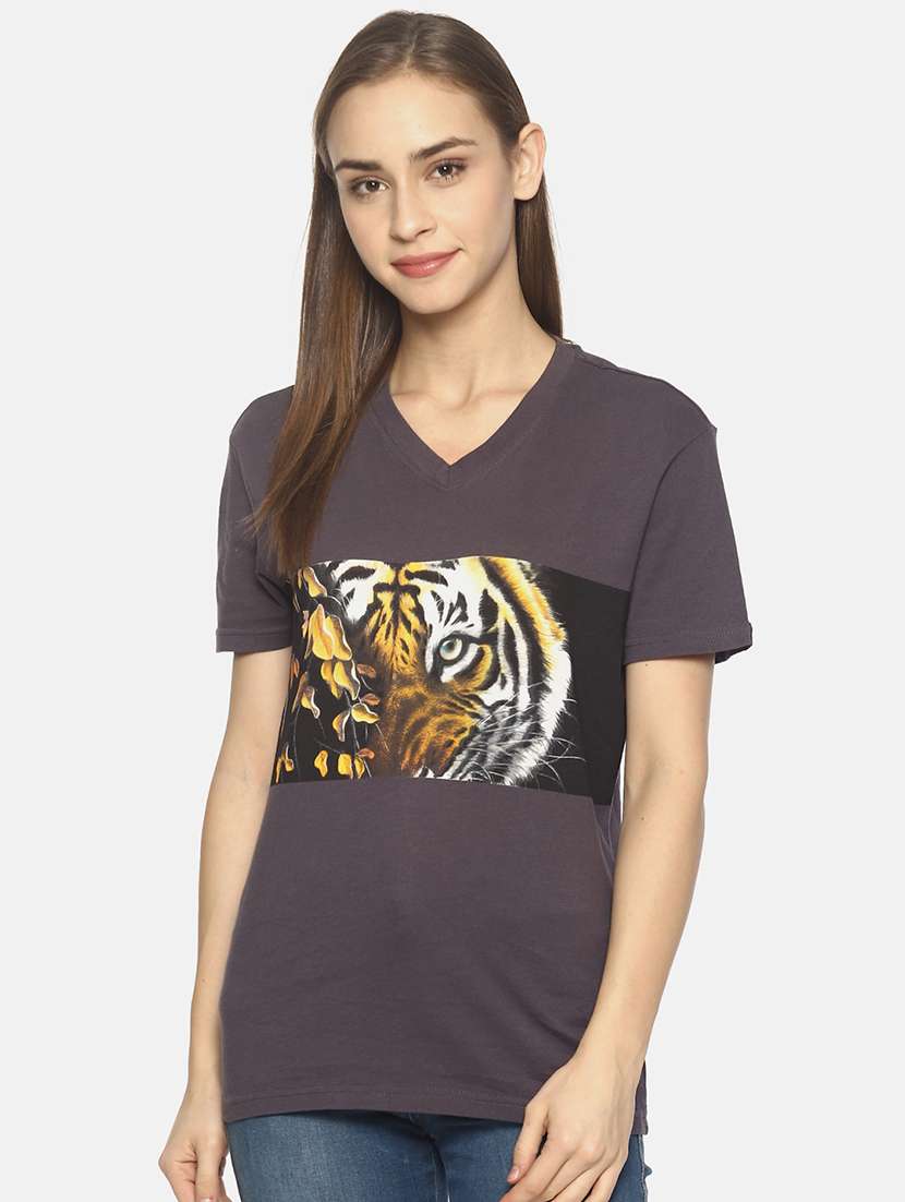 - » women's front print v neck t-shirt
