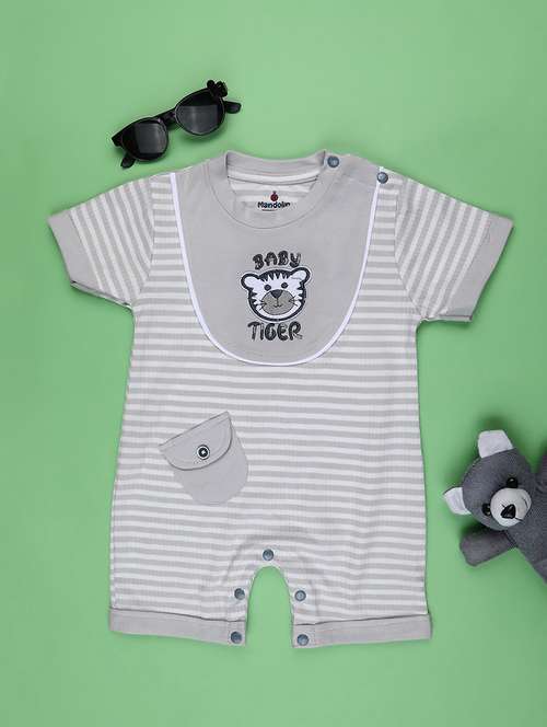 - Onesies and rompers are famous among the infants because it is comfortable and looks cute at the same time. Get one for your little one from V-Mart in grey colour.