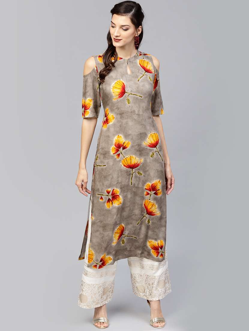 floral printed straight kurta - 16261384 - Very Small Image - 1