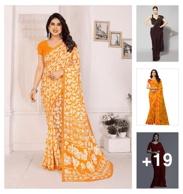 women printed casual wear saree with blouse