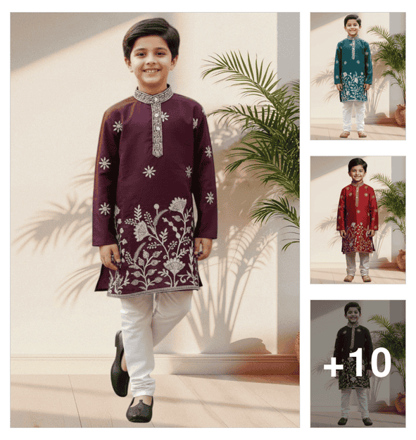 boys solid long sleeves kurta pyjama set