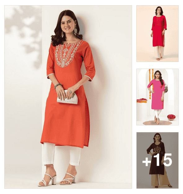 women plus size embroidered straight kurta