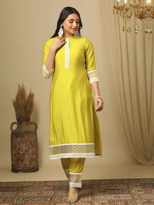 - Find gorgeous sets of ethnic wears in trending designs in lime colors suitable for festive wear of occasions.