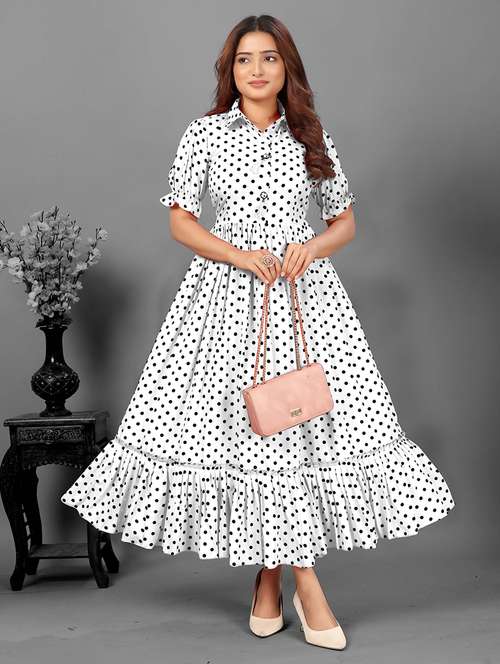 women white polka dots sleeveless tiered dress