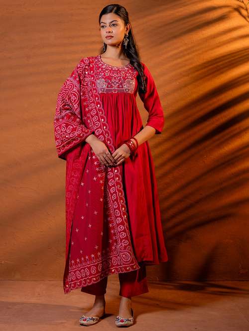 - Find gorgeous sets of ethnic wears in trending designs in maroon colors suitable for festive wear of occasions.