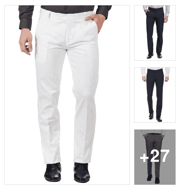 men solid flat front casual trouser