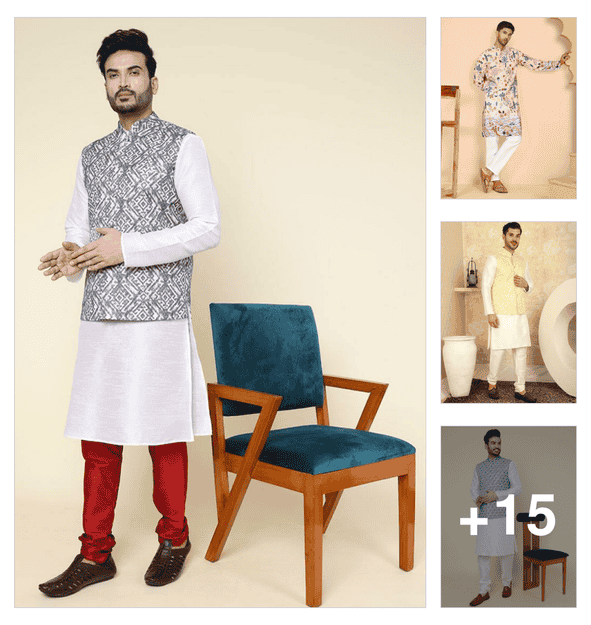 men solid with work mandarin neck long kurta