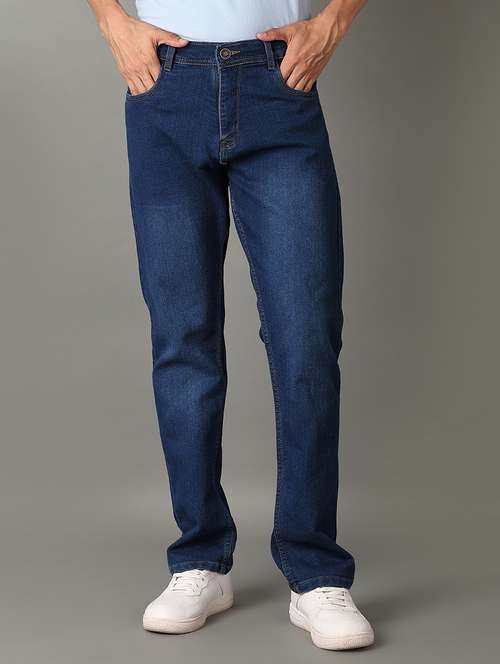 men blue plain jeans