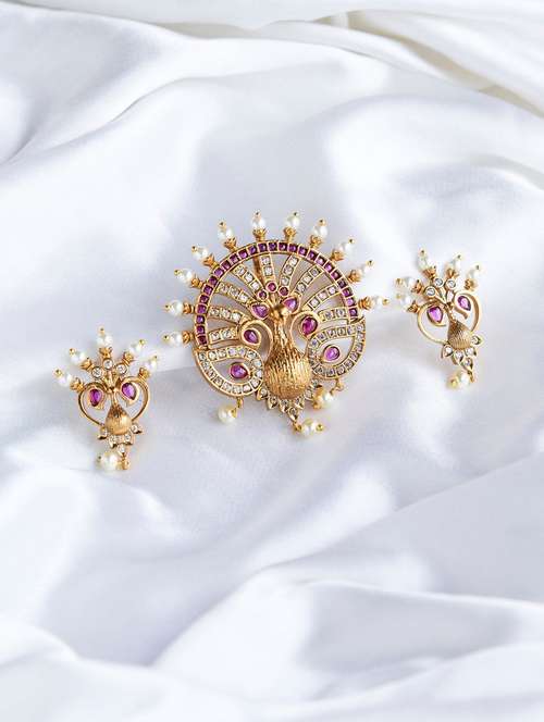 women stone studded pendent locket and earring set - 22280922 -  Standard Image - 0 women stone studded pendent locket and earring set - 22280922 -  Zoom Image - 0