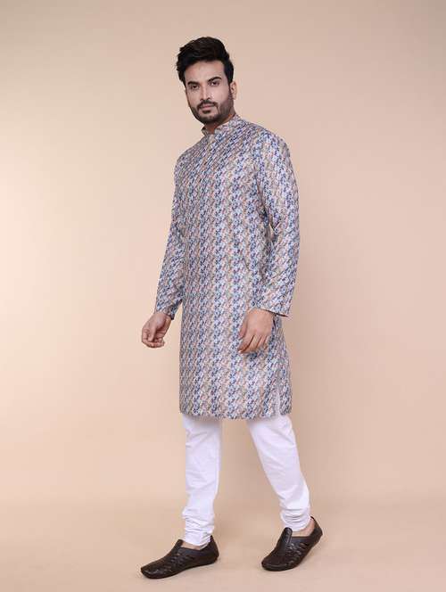 - » men printed mandarin neck long kurta