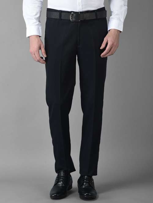 - » navy blue solid flat front formal trouser