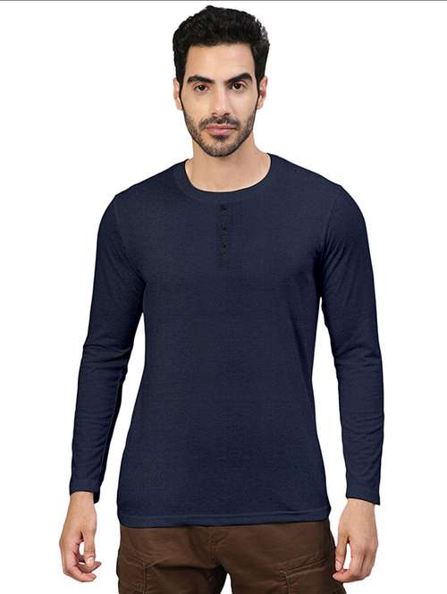 - » navy blue solid round neck t-shirt