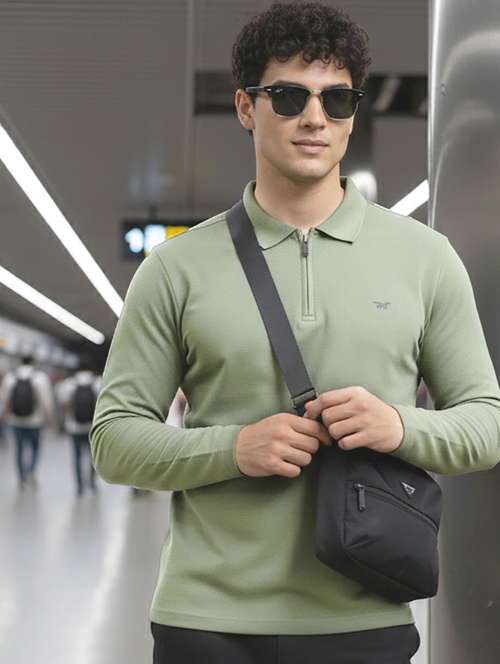 - » men solid long sleeve polo t-shirt