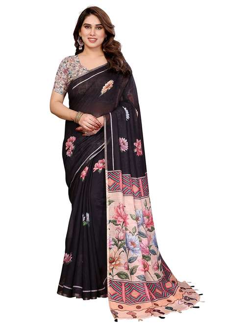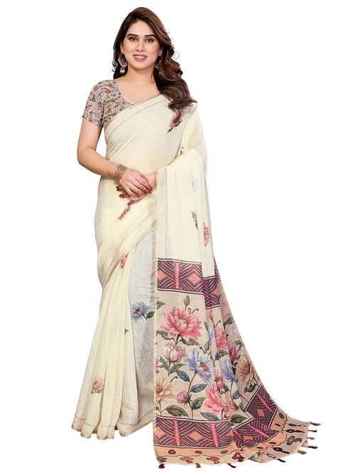women printed casual wear saree with blouse