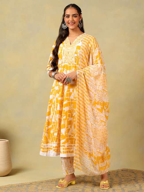 - Browse through the latest range of ethnic sets for women with tailored sleeve designs with embroidered works.