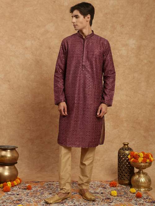 - » men printed mandarin neck long kurta