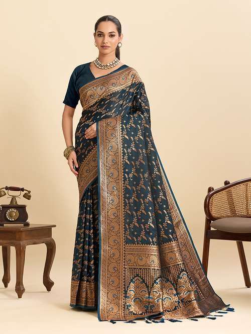 Step into timeless grace with this exquisite Soft Silk Saree, crafted to celebrate Indian heritage with a royal touch. Adorned with intricate antique gold zari floral weaving, this saree reflects traditional artistry blended with classic elegance. The richly detailed ornate border and pallu enhance its luxurious appeal, making it a perfect choice for weddings, festive occasions, and cultural celebrations.
