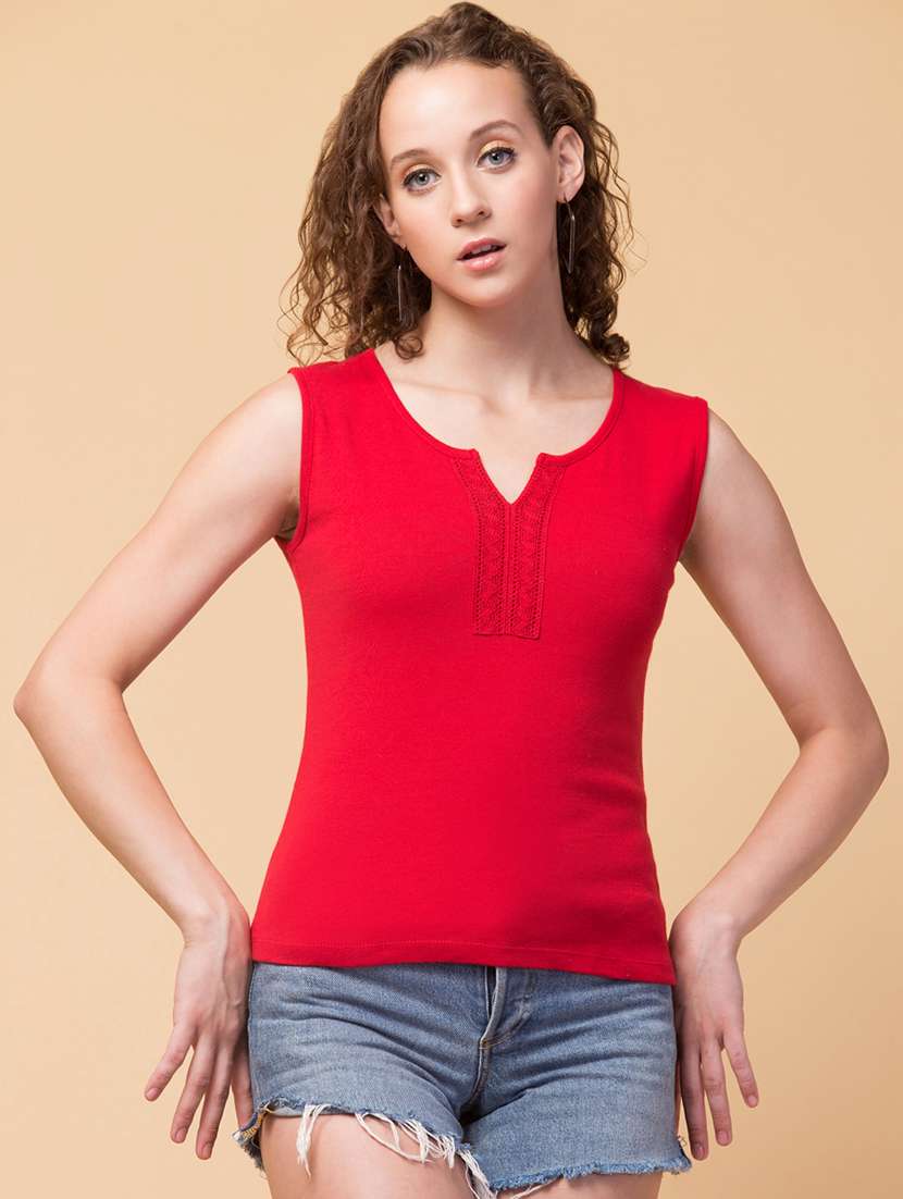 notch neck lace detail top