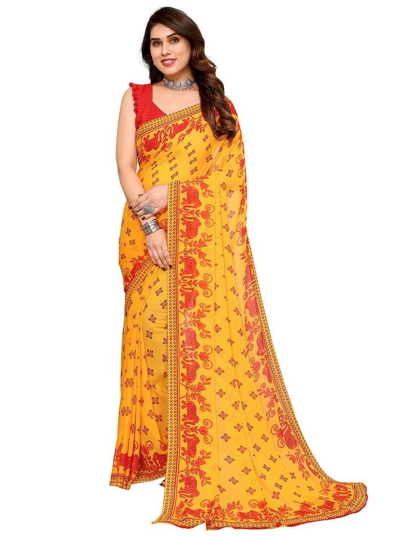 Elevate your everyday ethnic style with this elegant Daily Wear Georgette Saree. Crafted from lightweight and flowy georgette fabric, this saree offers comfort and effortless drape, making it ideal for regular wear, office, or casual outings. The delicate prints add a touch of grace and femininity, while the soft texture ensures ease of movement throughout the day. Pair it with minimal jewelry and sandals for a refined everyday look.