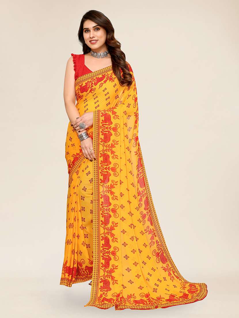 Elevate your everyday ethnic style with this elegant Daily Wear Georgette Saree. Crafted from lightweight and flowy georgette fabric, this saree offers comfort and effortless drape, making it ideal for regular wear, office, or casual outings. The delicate prints add a touch of grace and femininity, while the soft texture ensures ease of movement throughout the day. Pair it with minimal jewelry and sandals for a refined everyday look.