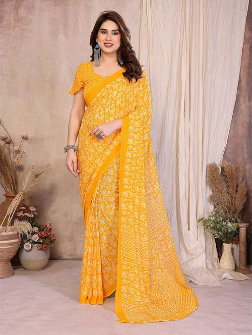 Discover effortless charm and timeless style with our Printed Georgette Saree, designed for women who love elegance with comfort. Crafted from premium-quality georgette, this saree features a soft, lightweight, and flowy drape, making it perfect for all-day wear.