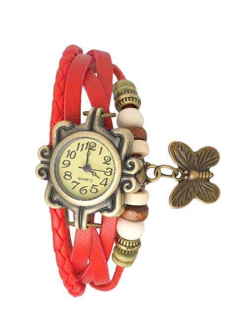 red embellished analogue wrist watch
