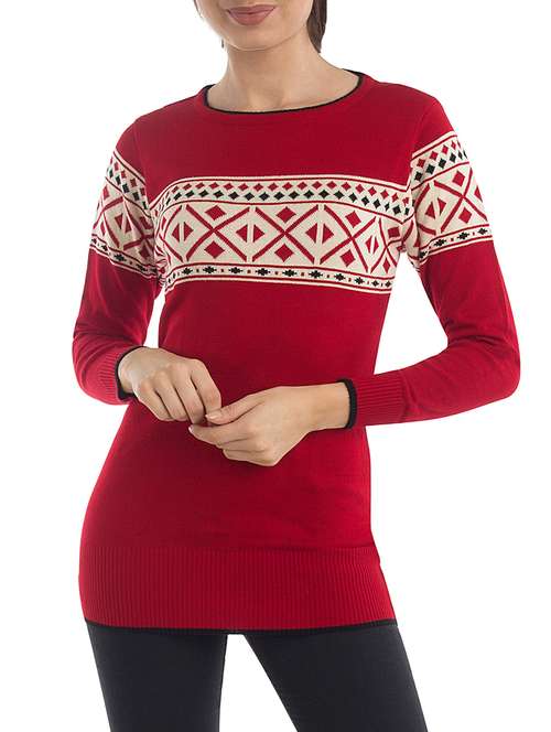 red woolen casual pullover