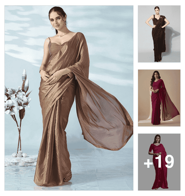 women brown solid saree with blouse