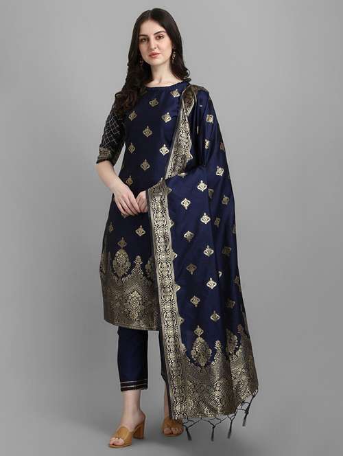 - Find gorgeous sets of ethnic wears in trending designs in navy blue colors suitable for festive wear of occasions.