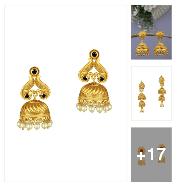 yellow metal jhumka earring