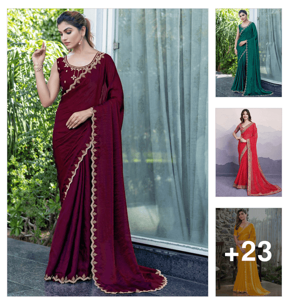 women solid with work embellished saree with blouse