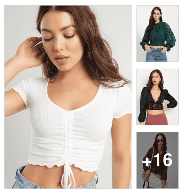 women short sleeves solid crop top