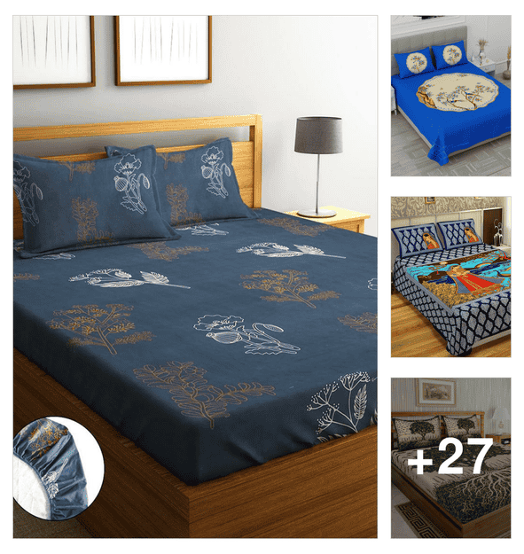 home sizzler 210tc midnight bloom elastic fitted double bedsheet (72x78 inch) with 2 king size pillow covers