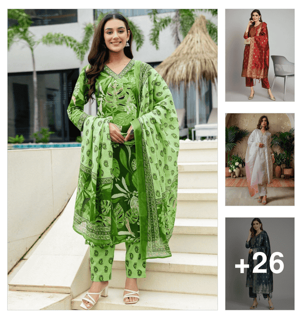 women printed long sleeve kurta pant with dupatta set