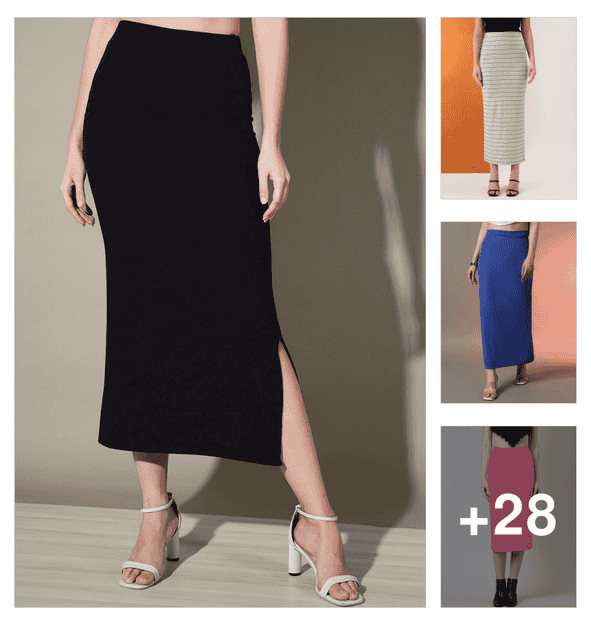 women solid high rise bodycon skirt