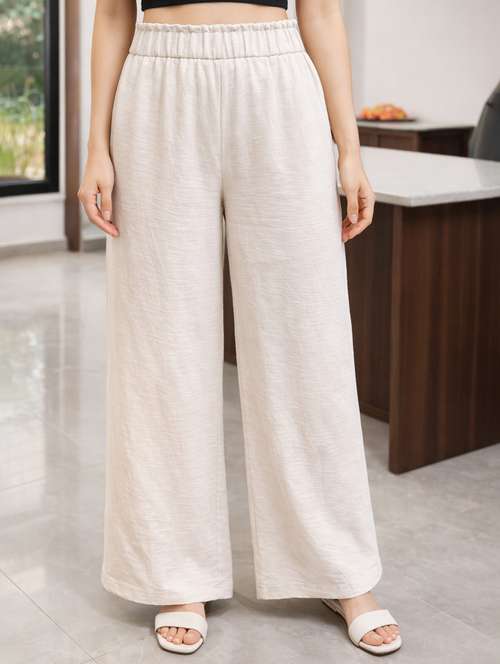 Upgrade your everyday wardrobe with these women’s wide-leg palazzo pants designed for effortless comfort and modern style. Crafted from a soft, breathable fabric, these pants feature a fully elasticated waistband that adapts to your body for a comfortable, flexible fit. The relaxed wide-leg cut offers free movement while creating a flattering drape. Ideal for lounging at home, work-from-home routines, casual outings, or travel, these versatile palazzo pants pair perfectly with crop tops, t-shirts, or casual tops. A must-have essential for comfort-focused fashion.