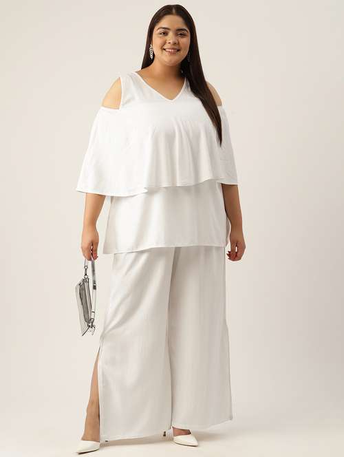 white solid cold shoulder top and palazzo co-ord set  - 20120495 - Very Small Image - 1