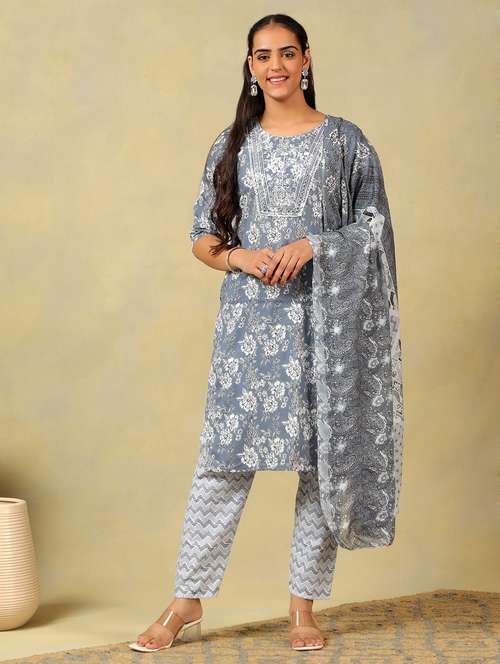 - Browse through the latest range of ethnic sets for women with tailored sleeve designs with embellished works.