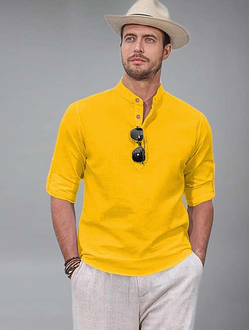 - » men solid mandarin neck short kurta